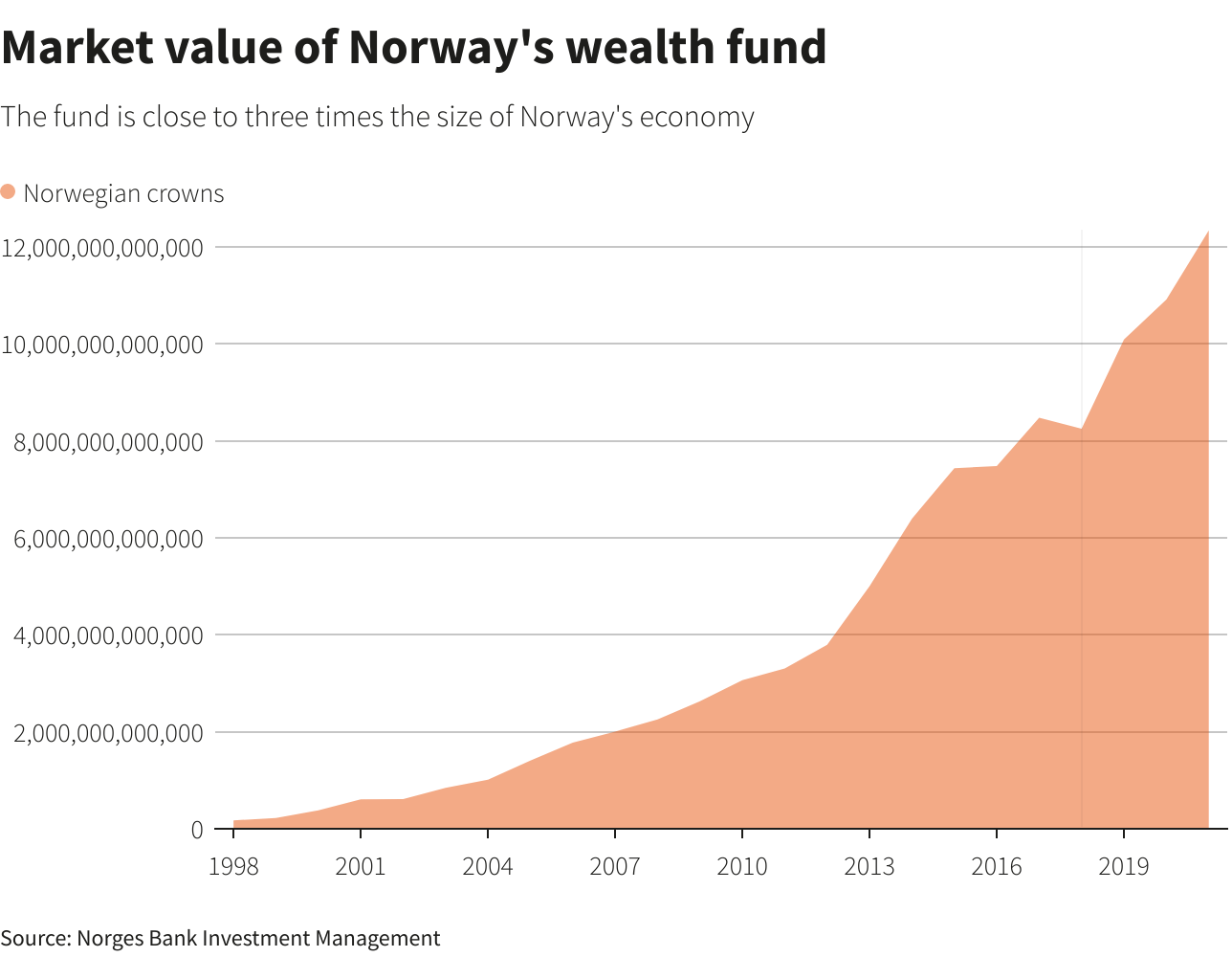 The fund also invests its oil surplus into global stocks and bonds, as well as real estate.
